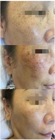 Тільця пігменту в плямі «затвердіють», коли вони розпадуться після нагрівання, колір пігменту стане глибшим, який зникне через кілька днів. Тому поглиблення пігменту можна використовувати як клінічну кінцеву реакцію (чим темніший колір плями, чим більше світла вона поглинає, тим легше її видалити).