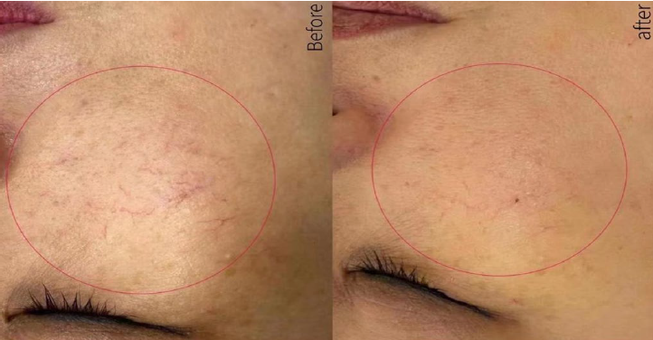 Температура підвищується після того, як гемоглобін поглинає енергію сильного почервоніння шкіри, і тепло передається стінці кровоносної судини, щоб порушити фізіологічну функцію стінки кровоносної судини. Після руйнування стінки кровоносної судини вени і судини зникають, а товсті капіляри руйнуються.