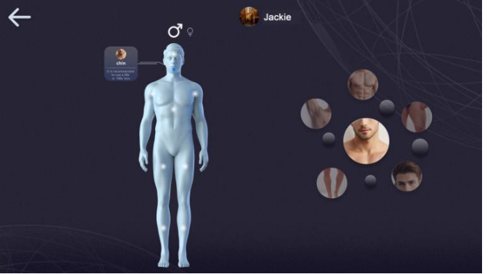 Інтерфейс дозволяє обрати стать клієнта, ділянку та фототип шкіри.