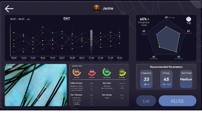 Опираючись на свій клінічний досвід, досвід практикуючих спеціалістів України, Європи та Америки, компанія Q-medical інтегрувала в інтерфейс платформ Supream – повноцінний блок аналізу волосся.